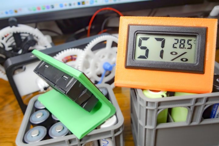 また、同ドライボックスにSwitchBot温湿度計を取り付けできるブラケットも作りました。