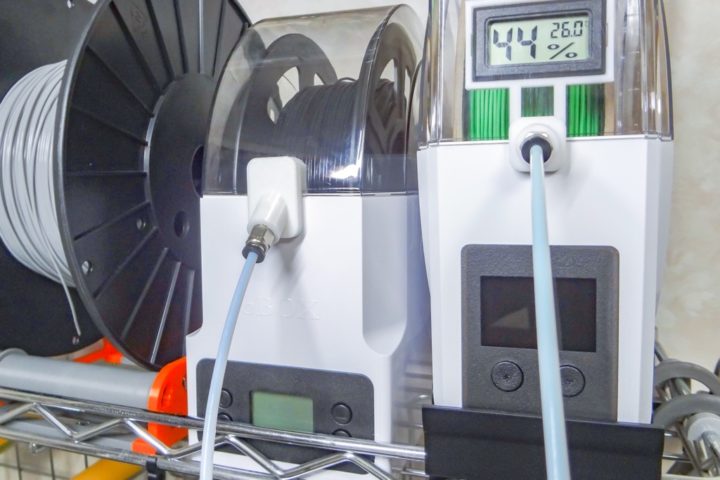 そんな事からフィラメントの管理はシリカゲルなどの吸湿剤を使い密閉性の高いドライボックスで湿度管理しながらの運用が望ましくなります。