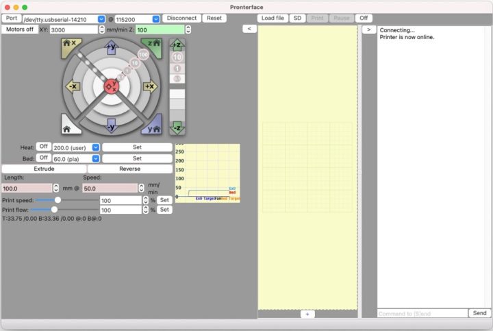 まずはこちらからPronterfaceをダウンロード&インストールして3DプリンタとUSB接続します。