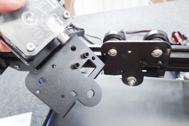 上記理由により標準で使われているプレートの上にエクストルーダー部分をマウントするブラケットを追加で取り付ける形としました。