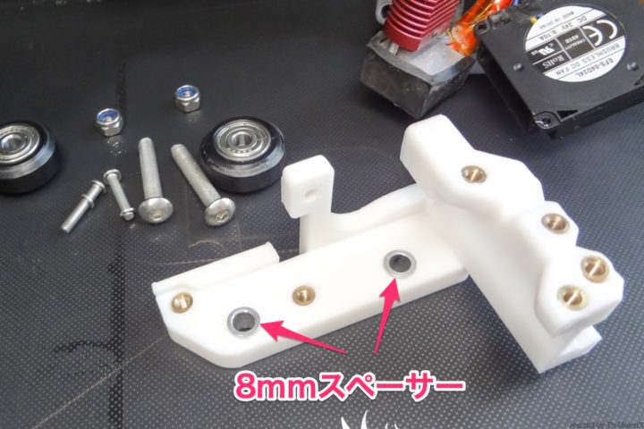 また真鍮のスペーサーナットを使うと上手くネジ穴に溶けた樹脂が入り込むのを防ぐことが出来ました。
