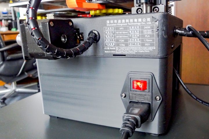 私の環境ではこの電源ボックスが結構邪魔で・・・KP3S本体と一体化出来れば何かと使い勝手が良くなるということで、以前Thingiverseに投稿されていたデータを使わせて頂きKP3S本体と電源ボックスをこのように一体化させました。