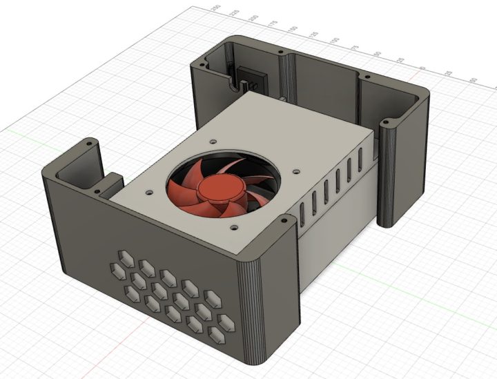この一体化ケースを想定してFANカバーの横にスリットを入れています。