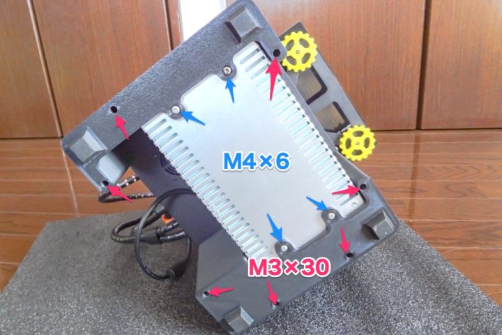 また底面の電源ボックスの固定にはM4×6ビスを使いますが、これは電源ボックスに付いている3本が使い回せます。