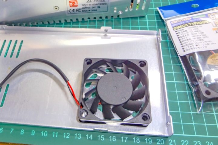 もともと電源ボックス用のFANは8025 FANに変更を想定してケースを設計していたのですが、電源FANに関してはそれほど気になるものではないため標準FANのまま(または静音60cmFANに交換)で問題なさそう・・・ということでFANの交換の前に電源ボックスを本体に一体化を先にやってみました。