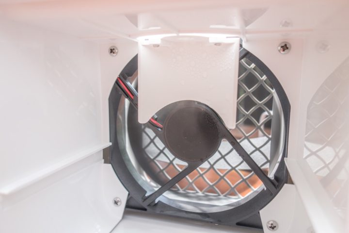 奥に取り付けられたメインのファンは直径約10cmと大型なものが使われています。