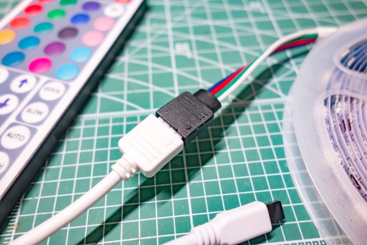制御回路に付いているプラグをLEDテープライトのプラグと繋ぐだけ。