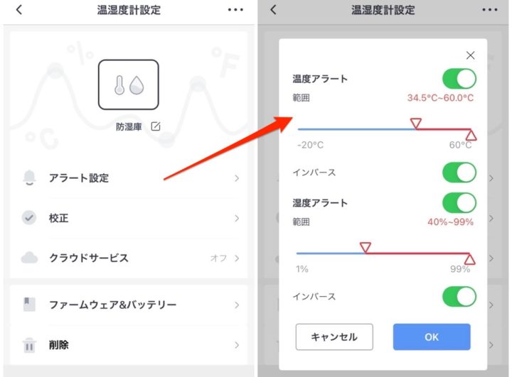 スマホアプリで温湿度の表示が可能