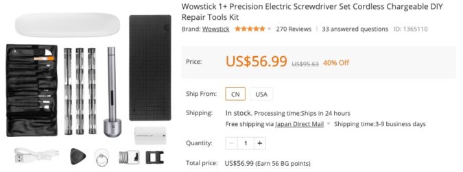 基本セットにあたる『Wowstick 1F+』と工具セット『Wowstick Mobile Phone Repair Tools Kit』で仕切られているようです。