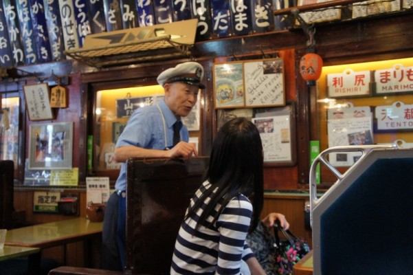 まず外の券売機で食券、いや失礼、このお店では乗車券と呼んでいるものを購入し店内へ。
